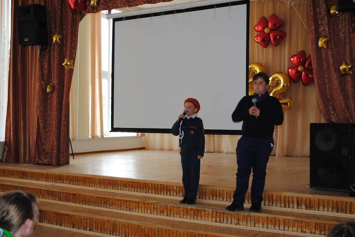 На этом мероприятии ребята из нашего выступили с танцем падеграс, Саша с сестрой исполнили музыкальный номер, а Матвей прочёл стихотворение "У обелиска.".
